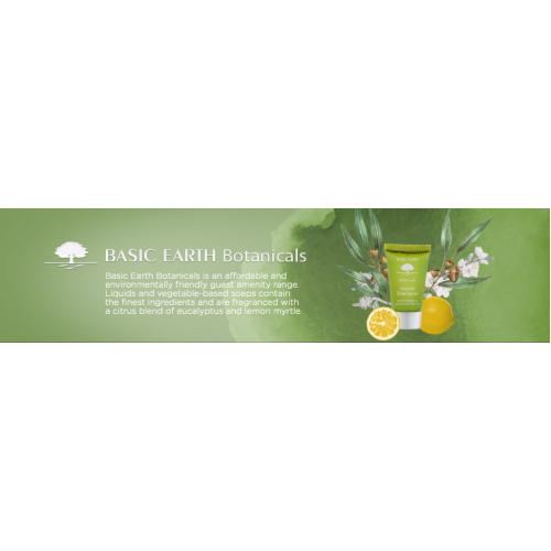 Basic Earth Botanicals is an affordable environmentally friendly guest amenities range. Elegant simplicity and quality ingredients combine to pamper the body and delight the senses. Liquids and Vegetable base liquids contain the finest of ingredients, biodegradable contents are fragranced with a citrus blend of Eucalyptus and lemon Myrtle. Treat your guests with this modern and fresh amenities line.