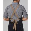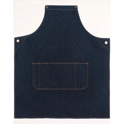 Cross back Denim Bib Apron with antique brass eyelets and studs, contrast denim stitching.
