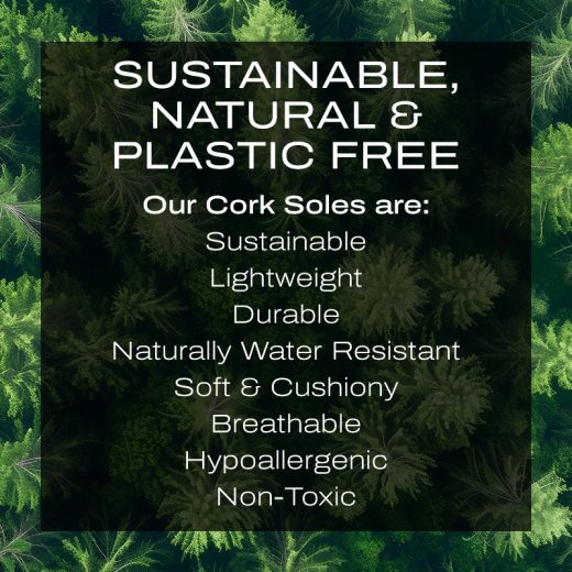 • Natural cork fibre sole: Lightweight, supportive, and sustainable