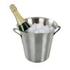 Stainless steel wine bucket maintains its cool temperature when its full of iced water. Plus, its handles make it easy to take to and from the table without heating the bucket with your hands.