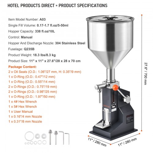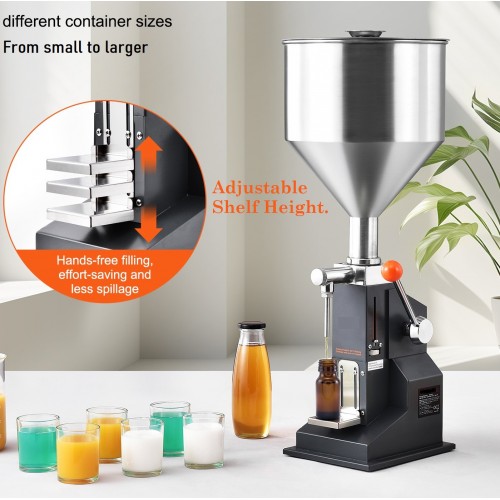 – **Height Adjustable Shelf**: This liquid filling machine comes with a height-adjustable shelf, making it easy to refill containers of all sizes, including small bottles. Two nozzle options (0.16″/4mm and 0.31″/8mm) ensure accurate alignment, reducing spills and maximizing efficiency.