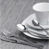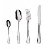 SHAPELY AND SUBSTANIAL CONTEMPORARY STAINLESS STEEL FLATWARE HAS A MIRROR POLISHED FINISH.