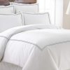 The stitched embroidery creates a stunning presentation of tailored simplicity for any elegant bedroom setting.