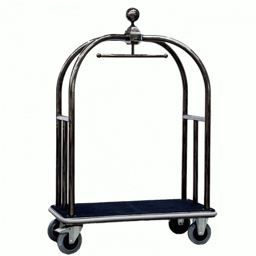 Built with high-grade stainless steel, features a sleek silver frame paired with a black carpeted platform for a refined, modern aesthetic. Whether used in hotels, resorts, or corporate environments, it embodies durability and sophistication in every detail.