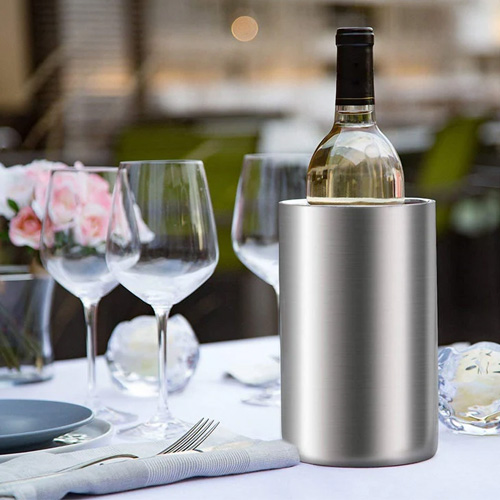The Stainless Steel Insulated Wine Cooler is a stylish and efficient way to keep your wine chilled.